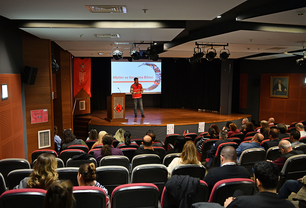 Destek Hizmetleri Daire Başkanlığı, Öğrenci Dekanlığı ve Türk Kızılayı iş birliğinde, 27 Mart 2026 Cuma günü saat 10.00'da Bakırköy yerleşkesi Ataköy binasındaki Önder Öztunalı Konferans Salonu’nda “Afetler ve Korunma Bilinci Semineri” gerçekleştirildi. Seminer kapsamında; afet öncesinde alınması gereken önlemler, afet anında doğru davranış biçimleri ve afet sonrasında yapılması gerekenler gibi konularda bilgilendirmeler yapıldı.