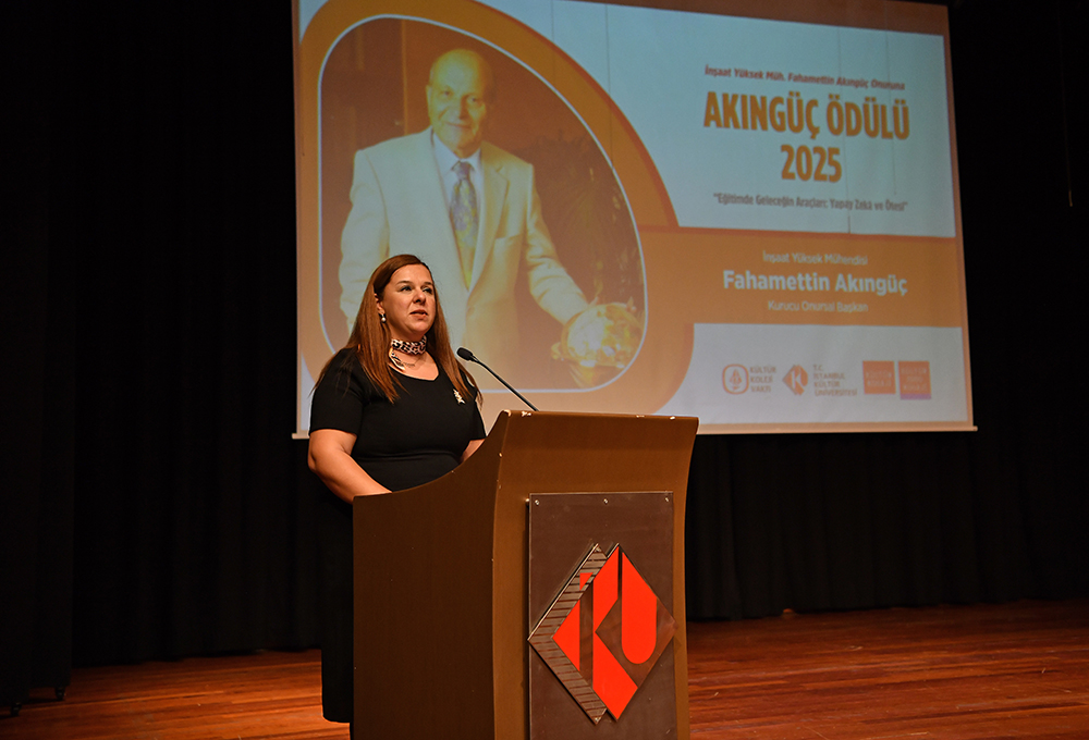 Törende konuşan İstanbul Kültür Üniversitesi Rektörü Prof. Dr. Fadime Üney Yüksektepe, Akıngüç Ödüllerinin 2016-2017 akademik yılında Akıngüç Ailesinin desteğiyle hayata geçirildiğini belirterek; bugüne kadar hukuk, sanat ve temel bilimler başta olmak üzere pek çok alanda bilim ve kültür dünyasının değerli isimleriyle buluştuklarını ifade etti. 2025 yılı ödül temasının, eğitimin geleceğini şekillendiren temel dinamiklerden biri olan yapay zekâ ekseninde belirlendiğini vurgulayan Prof. Dr. Yüksektepe, başvuru sürecine katılan tüm çalışmaların ülkemizde eğitimin geleceği adına umut verici nitelikte olduğunu söyledi.